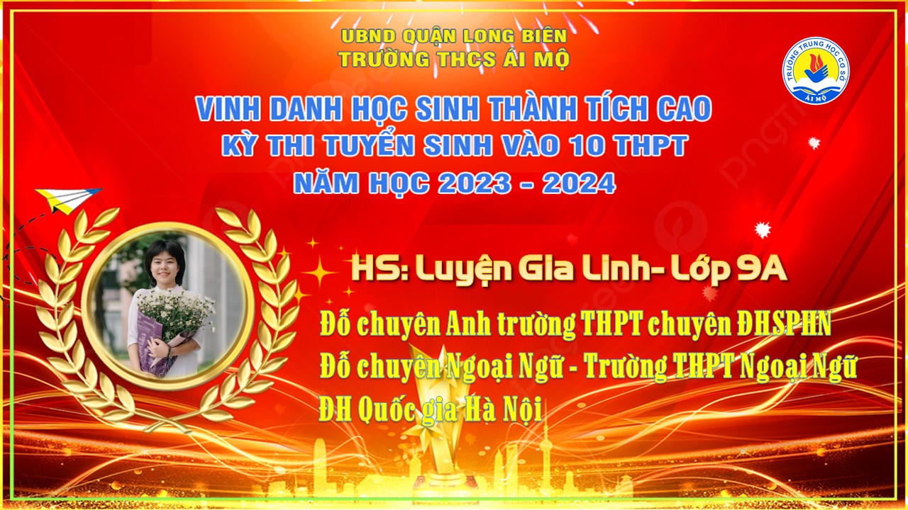 Luyện Gia Linh là một trong những học sinh xuất sắc đã ghi tên mình vào bảng vàng thành tích của trường THCS Ái Mộ. Xin chúc mừng Gia Linh! Chúc em bước vào cánh cửa trường THPT sẽ luôn phát huy được tinh thần học tập xuất sắc và gặt hái được nhiều thành công!
