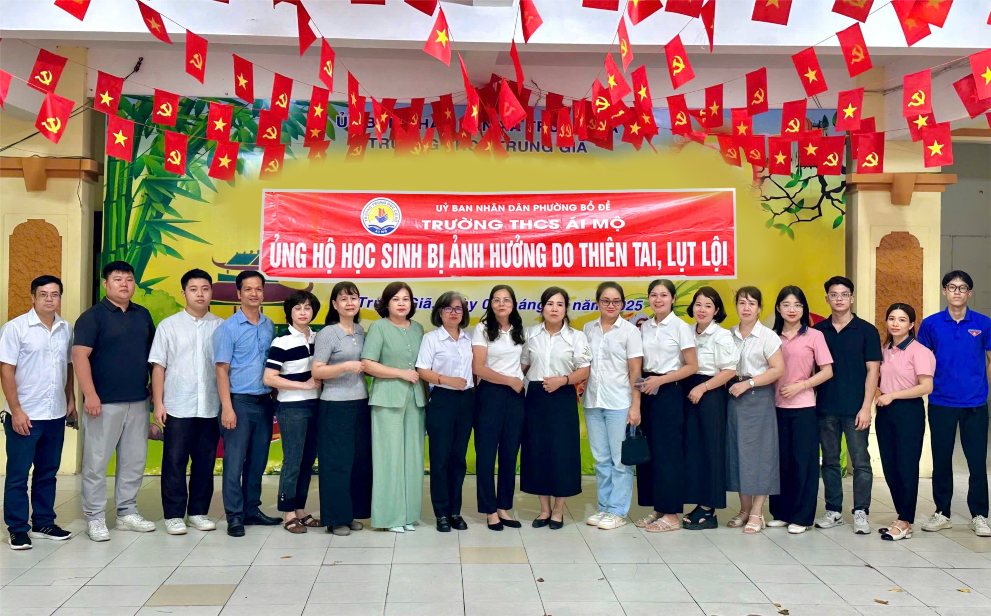 “Cô ơi, nhà con ngập lắm, con không còn sách vở…” – lời nói ngập ngừng của một học sinh nhỏ khiến các thầy cô trong đoàn không khỏi xúc động. Những món quà được trao tay – từ tập vở, những chiếc bút bi, đến những thùng mì tôm, hộp sữa – tuy giản dị nhưng chứa đựng tình cảm và sự sẻ chia sâu sắc của thầy trò Ái Mộ dành cho các bạn vùng lũ.