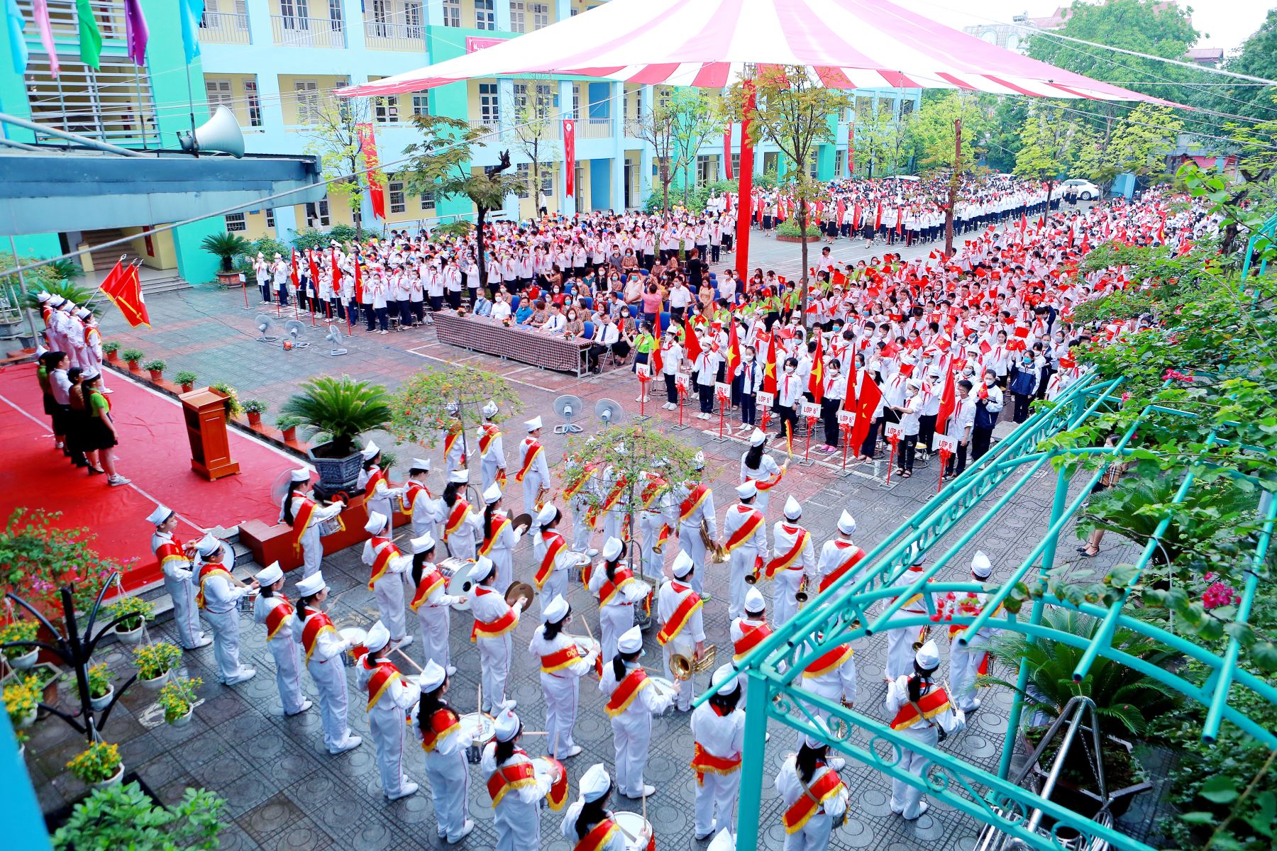 Sau lễ chào cờ theo nghi thức quốc gia, cô giáo Nguyễn Thị Kim Nhung – Chủ tịch Công đoàn nhà trường đã trang trọng tuyên bố lý do, giới thiệu đại biểu tới dự buổi Lễ.