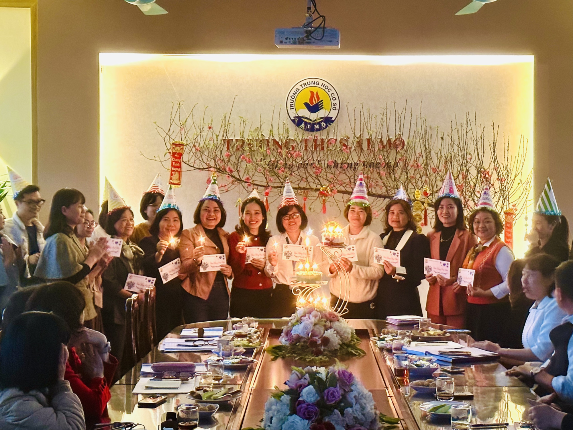 Mở đầu chương trình, công đoàn nhà trường tổ chức sinh nhật các thầy cô giáo sinh nhật Quý IV năm 2023 và quí I năm 2024. Ngôi nhà Ái Mộ ấm áp trong lời hát chúc mừng sinh nhật vô cùng ngọt ngào, vui vẻ.