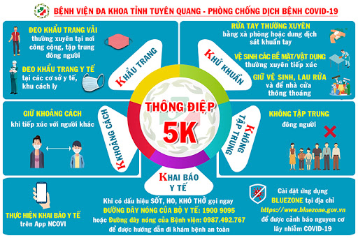 Hãy thực hiện "5K: Khẩu trang – Khử khuẩn – Khoảng cách – Không tập trung – Khai báo y tế" để giữ an toàn cho Bạn và Chúng ta trước đại dịch COVID-19!
